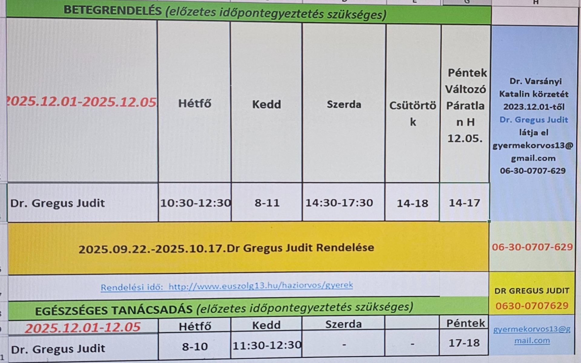 RÉVÉSZ UTCAI GYEREKRENDELŐ -HÁZI GYEREKORVOSI ALAPELLÁTÁS DR GREGUS JUDIT