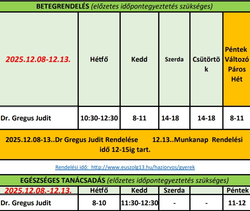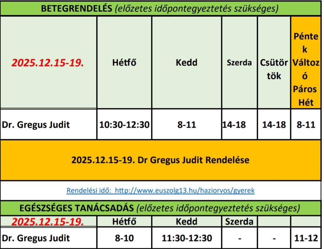 AKTUÁLIS 2025 December havi RENDELÉSI IDŐ